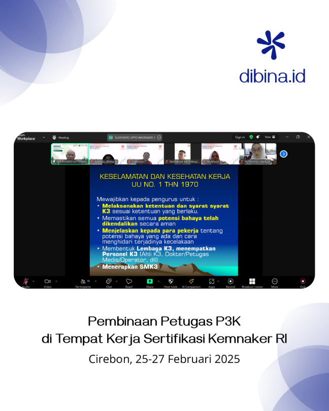 PEMBINAAN PETUGAS P3K DI TEMPAT KERJA SERTIFIKASI KEMNAKER RI. CIREBON
